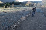 In San Baltazar Guelevila, Maestro campesino mezcalero Aureliano Hernandez has envisioned and realized another vivero to grow and nurture agave. Here pictured, Aureliano and the vivero, stepped and irrigated with a gas powered generator that draws water from a spring below.