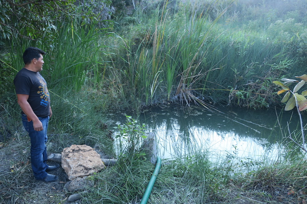 In San Baltazar Guelevila, Maestro campesino mezcalero Aureliano Hernandez has envisioned and realized another vivero to grow and nurture agave. Here pictured, Aureliano and the vivero, stepped and irrigated with a gas powered generator that draws water from a spring below.