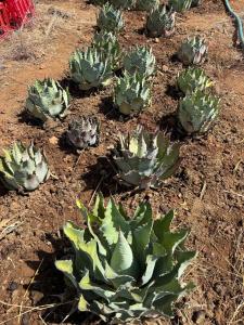Bio-diverse Tobala varietals we raised from seed in 2018, approach maturity in the lands of Berta Vasquez
