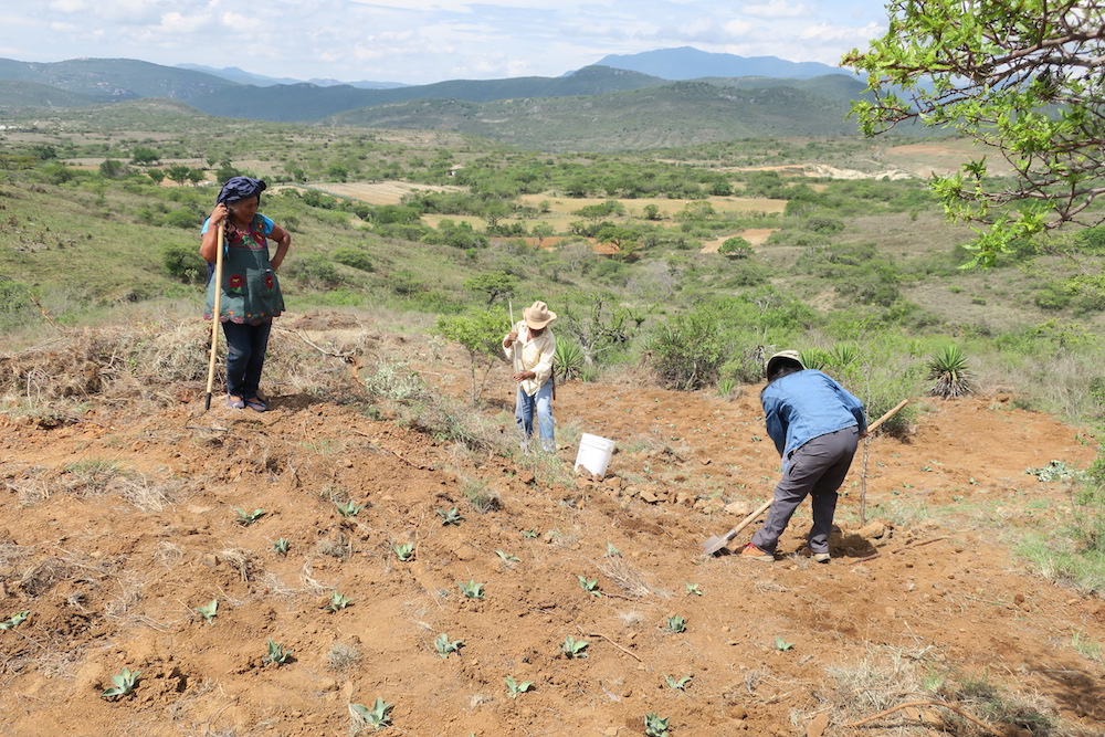 Bio-diverse Tobala varietals we raised from seed in 2018, approach maturity in the lands of Berta Vasquez