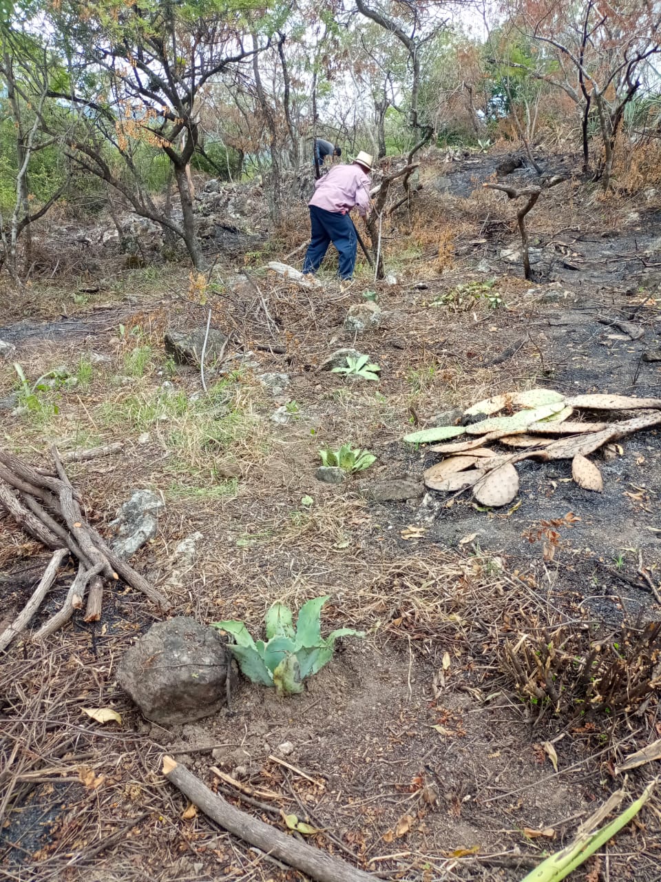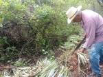 Abel Martinez clearing land to transplant Tobala in an agroforestry approach amongst trees