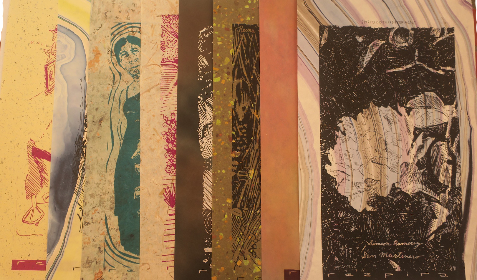 Drawings screen-printed on these brilliant handmade/hand painted papers that are ethereal and alive. Thin and constant in density, these papers (and pigments) glow softly with the light. 18×11 inches // 46x27cm. A series of 20 sets, signed and numbered by I, Alex White. Printed by Alejandro Alfonso Luis Ramírez in Oaxaca Mexico.