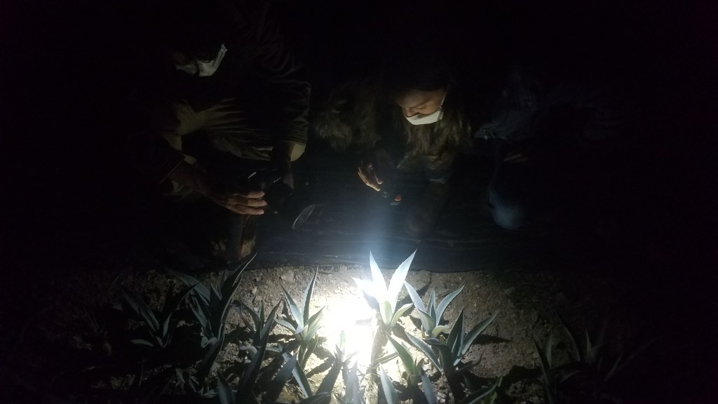 These paintings were made from photos of agave grown from seed in the Vivero Amigos del Maguey y la Biodiversidad in early 2021. Photo assistance by Megan Glore and me Alex White-Mazzarella.